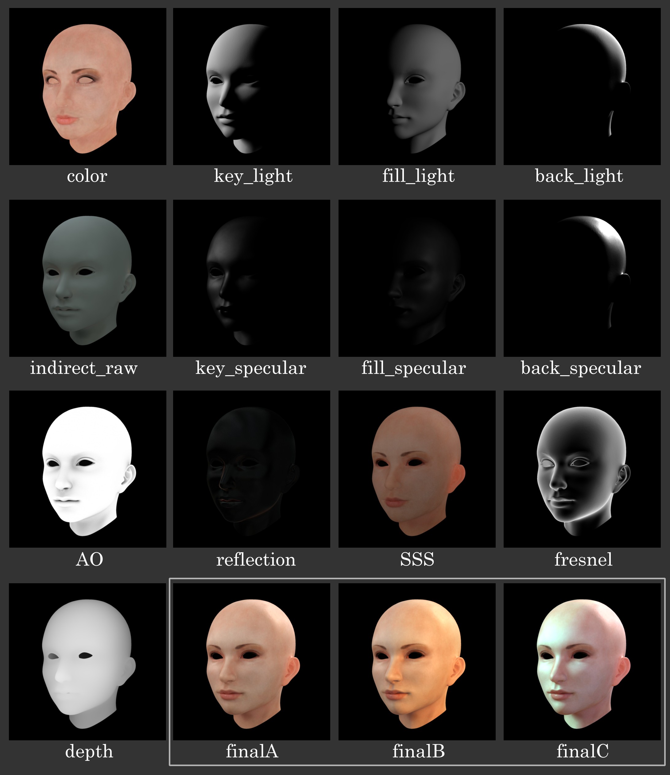 とりあえず肌のシェーディングをパスレンダしてみました。